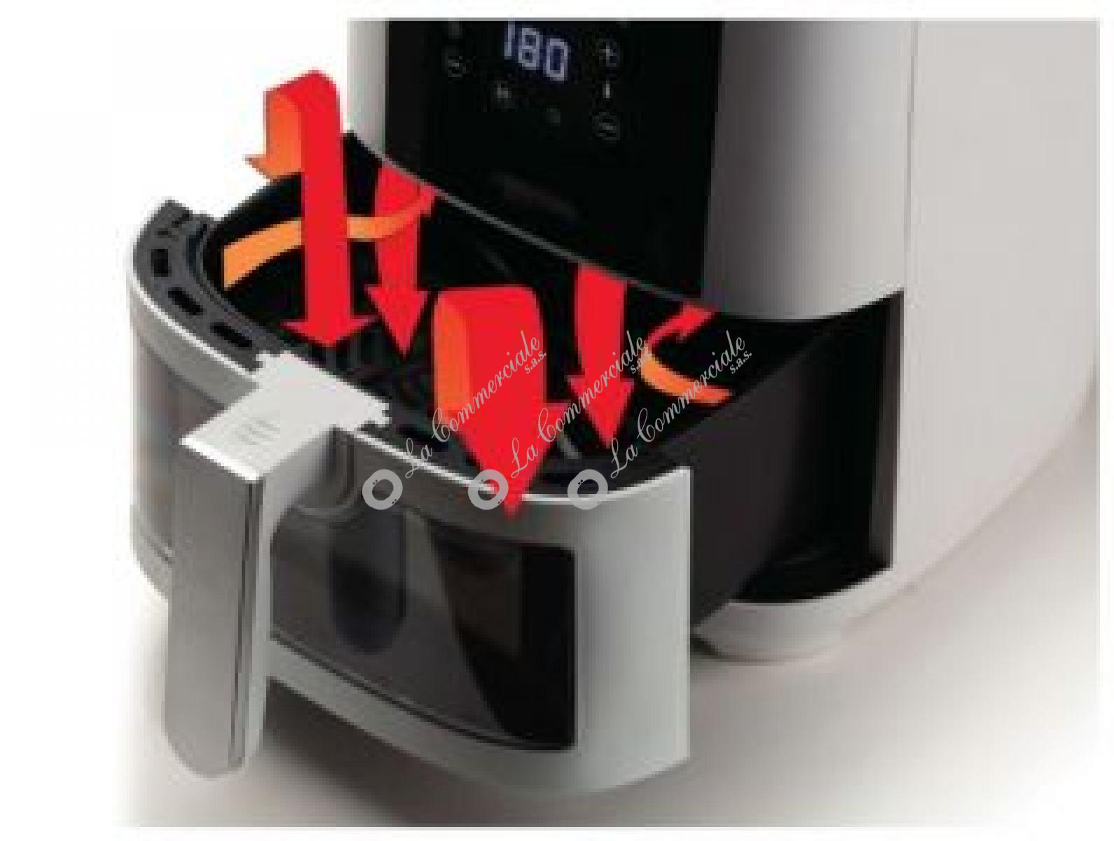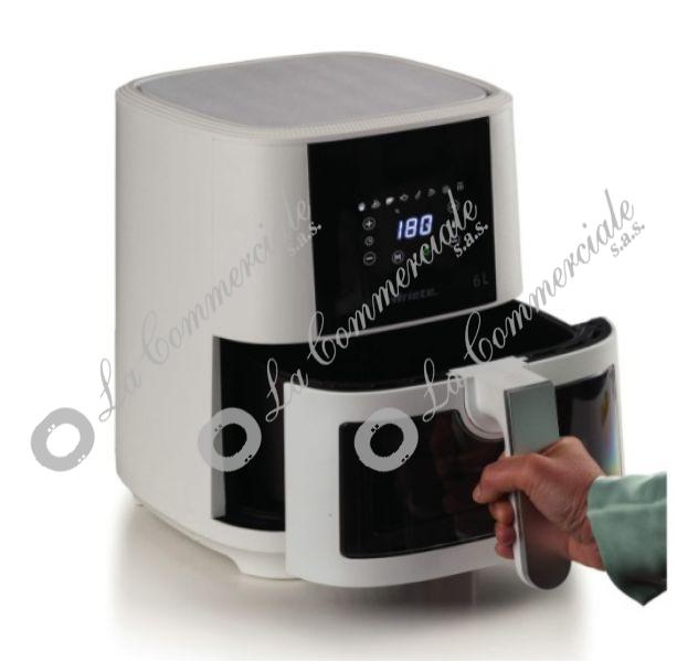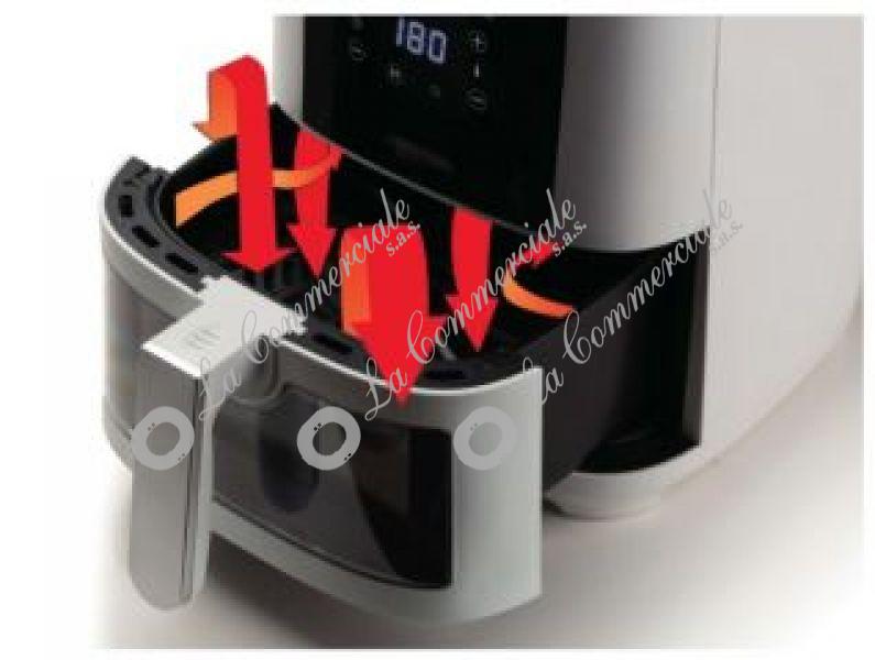 - Potenza: 13OOW - Capacita' totale: 6Lt. - Cestello trasparente per controllo cottura - Capacita' per pietanze: 2,5Kg. - Pannello: Digital Touch Screen - 8 programmi preimpostati - Timer regolabile - Temperatura regolabile fino a 200