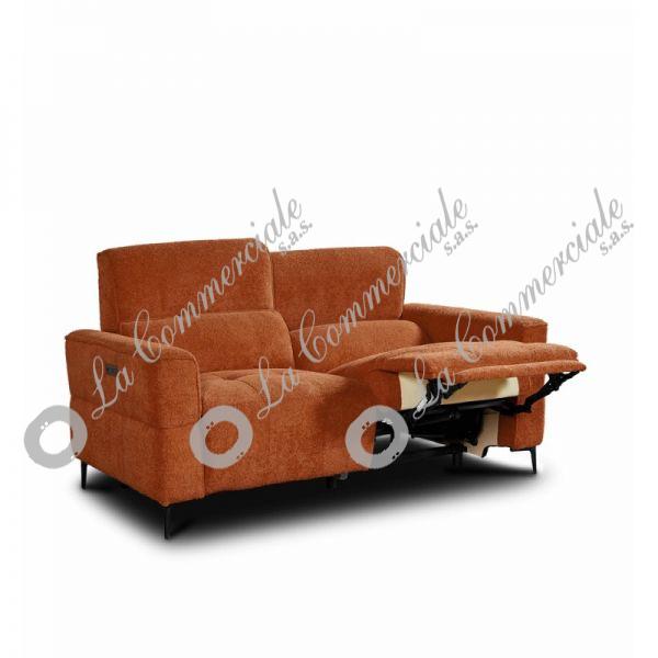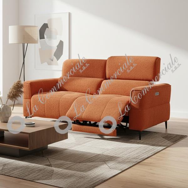-Dimensioni: L 197 x P 100 x H 95/105 cm. -3 posti -2 recliner elettrici -Testiera regolabile -Rivestimento in tessuto E006 -Tessuto 100% poliestere antimacchia -Colore aragosta -Altezza schienale 50 cm. -Altezza seduta 48 cm. -Larghezza seduta 154 cm. -Profondit