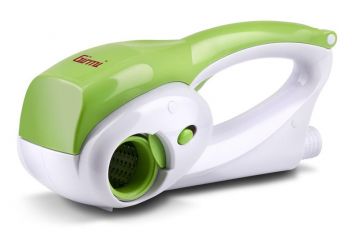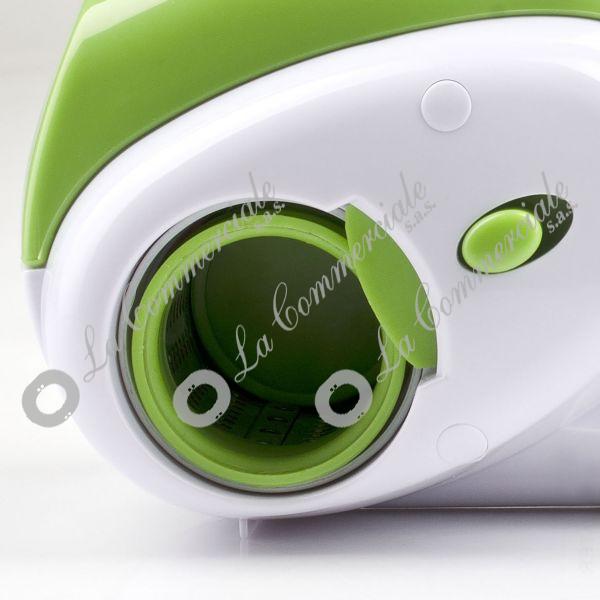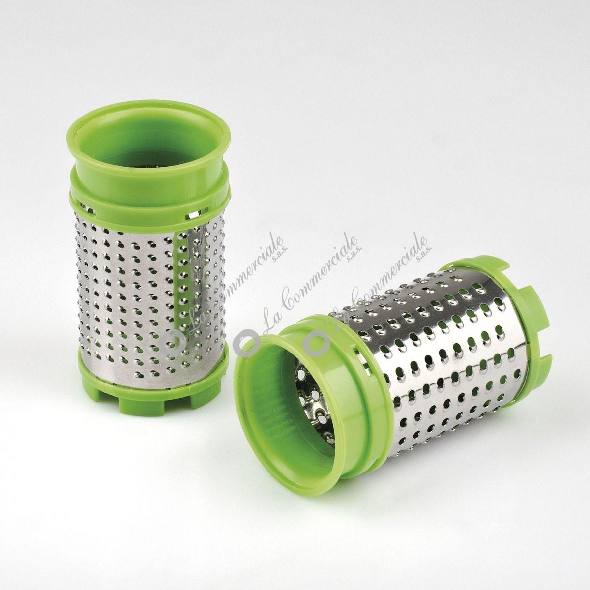 Grattugia elettrica cordless con impugnatura ergonomica, semplice da usare, con rulli facilmente estraibili per una veloce pulizia, ideale per tutta la famiglia. Sicura e maneggevole, la grattugia elettrica Girmi GT02 e' dotata di due rulli in acciaio inox: a grana fine per grattugiare formaggio stagionato come grana e parmigiano, pane, frutta secca e cioccolato fondente e a grana grossa perfetto per i formaggi teneri. - SPECIFICHE TECNICHE: - Potenza: 12 W; - 2 rulli inox per grattugiare: - rullo grana fine per formaggio, pane duro, frutta secca e cioccolato fondente; - rullo grana grossa per formaggi teneri o grattugiato grosso; - Premi alimenti in materiale plastico; - Impugnatura ergonomica; - Kit di ricarica con batteria, adattatore e base di ricarica; - Dimensioni (mm): 245 x 120 x 105; - Caricabatteria:IN AC 230 V 50 Hz, OUT DC 5 V - 300 mA; - Peso 0,72 Kg.