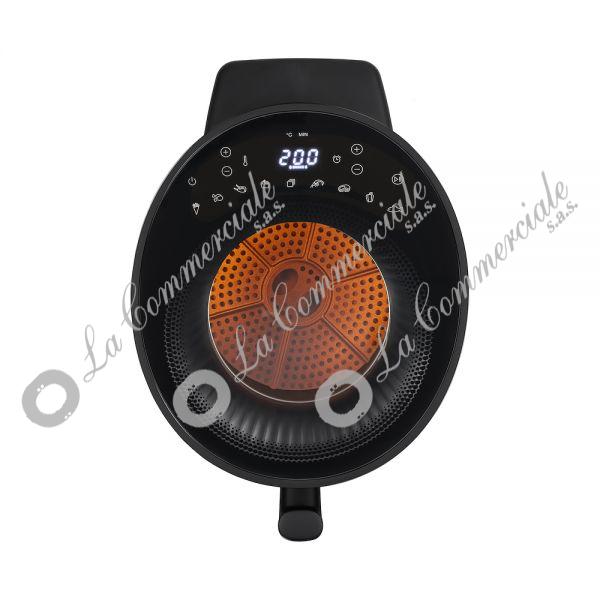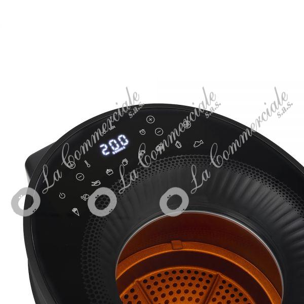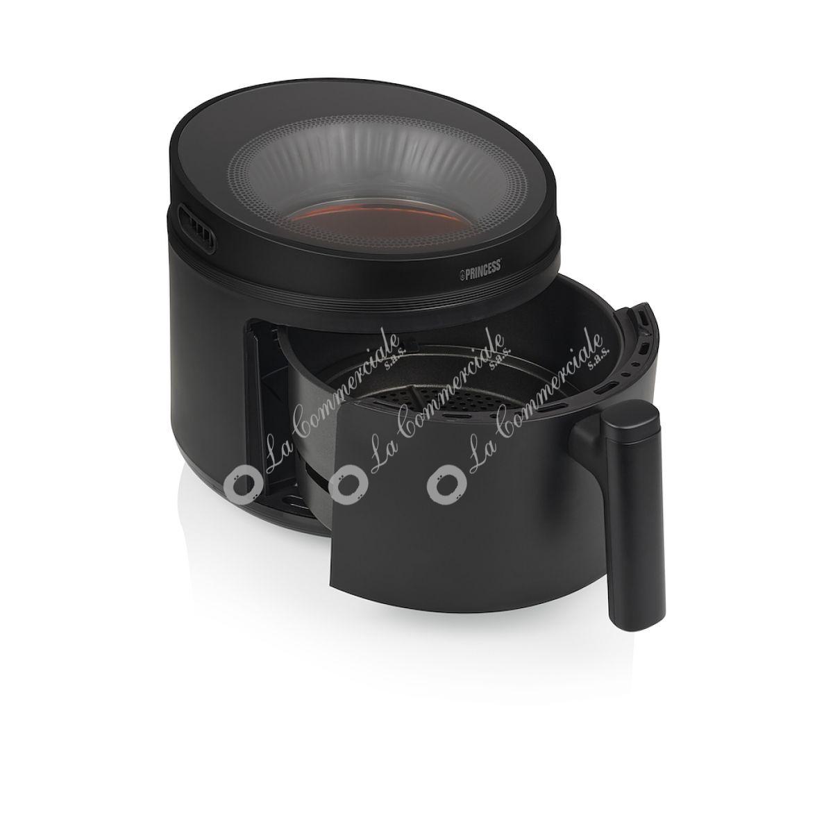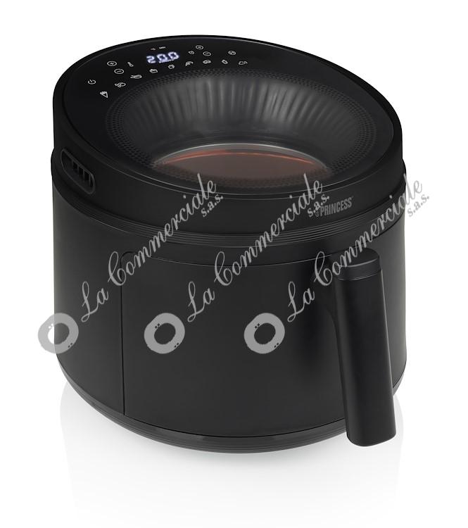 - Visibilita' ottimale dei tuoi pasti - L'airfryer presenta una finestra di visualizzazione a lucernario, che ti permette di monitorare il cibo dall'alto mentre cuoce. Non e' piu' necessario aprire l'air fryer per controllare se il cibo e' pronto, evitando cosi' la perdita di calore e risparmiando energia. - Tecnologia dell'aria ciclonica e riscaldamento radiante - Goditi cibi perfettamente croccanti senza bisogno di olio! La innovativa tecnologia di aria calda ciclonica garantisce un flusso d'aria uniforme intorno al cibo, risultando in una consistenza deliziosamente croccante da tutti i lati. Con il riscaldamento radiante, la friggitrice ad aria puo' raggiungere una temperatura di 200 gradi Celsius in pochi secondi, eliminando i tempi di attesa. La friggitrice ad aria raggiunge rapidamente la temperatura di cottura ideale per preparare i tuoi piatti preferiti. Il pratico promemoria di agitazione invia un avviso automatico a meta' cottura, garantendo cibi perfettamente croccanti ogni volta! - Grande volume e potente performance - Con una generosa capacita' di 5 litri e una potenza di 1500 watt, la Princess Airfryer offre ampio spazio e potenza per preparare deliziosi pasti per tutta la famiglia in una sola volta. Gli 8 programmi di cottura preimpostati rendono la cottura con questa air fryer un gioco da ragazzi. Che tu stia cucinando patatine fritte, snack, carne o verdure, le impostazioni vengono regolate automaticamente con un solo tocco di un pulsante. In alternativa, puoi personalizzare le impostazioni di temperatura e tempo utilizzando il pratico pannello di controllo digitale con timer integrato. Servire il cibo e' facile e sicuro con il cestello rimovibile dotato di manico a prova di calore. L'air fryer si mantiene saldamente su qualsiasi superficie con i suoi piedini antiscivolo, evitando che cada o scivoli. Un'altra caratteristica di sicurezza e' la protezione da surriscaldamento, garantendo che l'air fryer non diventi troppo caldo. - All'interno della scatola: Princess 182270 Cyclonic Vision Airfryer, cestello, griglia, manuale di istruzioni - Motivi per scegliere la Princess 182270 Cyclonic Vision Airfryer: - La particolare finestra di visualizzazione a lucernario fornisce una chiara visibilita' dei tuoi pasti dall'alto, consentendoti di monitorare facilmente i progressi senza aprire il cestello, risparmiando cosi' calore ed energia. - La avanzata tecnologia di aria calda ciclonica assicura un flusso d'aria uniforme intorno al cibo, risultando in una consistenza deliziosamente croccante. - Grazie alla tecnologia di riscaldamento radiante, l'air fryer puo' raggiungere una temperatura di 200 gradi Celsius in pochi secondi, consentendoti di iniziare immediatamente la cottura. - Con una generosa capacita' di 5 L e una potenza di 1500 W, l'airfryer offre ampio spazio e potenza per preparare deliziosi pasti per tutta la famiglia in una sola volta. - Il cestello rimovibile con manico a prova di calore, i piedini antiscivolo e la protezione da surriscaldamento garantiscono un uso sicuro dell'air fryer.